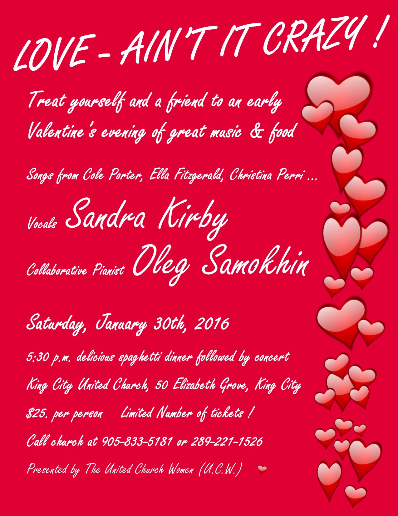 Our concert called “Love ~ Ain’t it Crazy !” was a blast – an evening of great food and music ! Here’s some excerpts of music performed with my fabulous collaborative pianist, Oleg Samokhin: